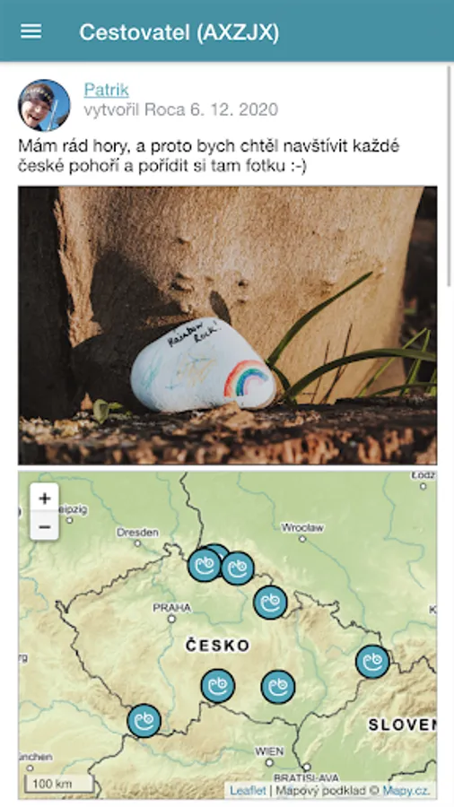 You can create your own stone, which you will send to the world. You paint it the way you already know it. You name him, write a story to him or set a goal for him and upload a photo to him. Then you just place it somewhere and confirm the position in the application where the stone is located.