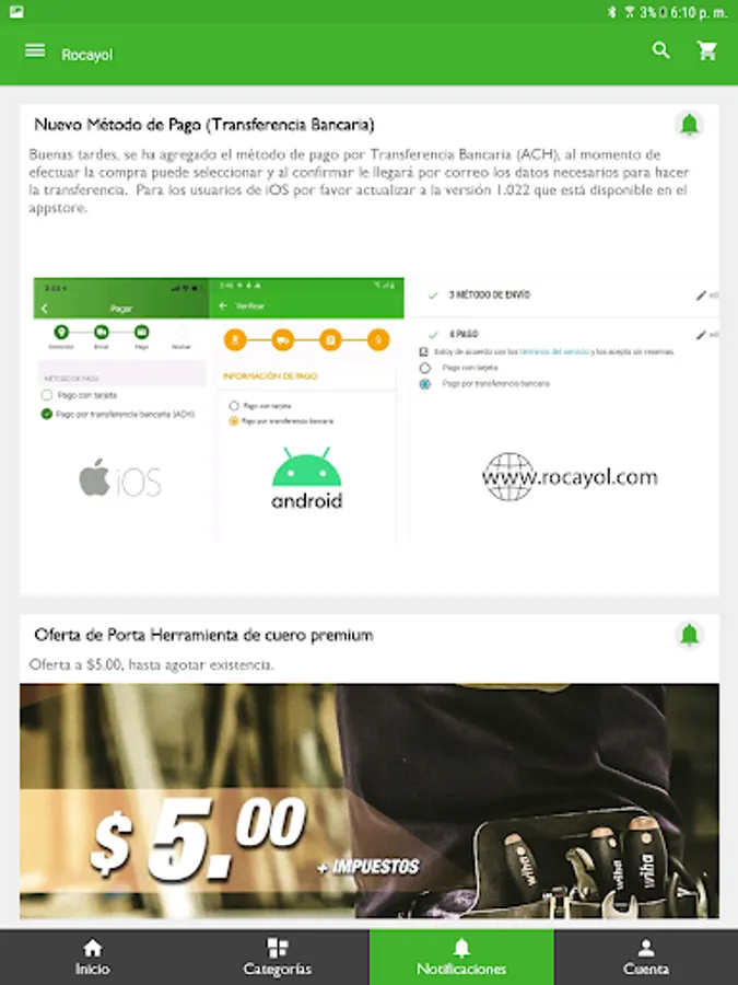 With the Rocayol application you can verify technical information of the products and buy with ease wherever you are. Follow your orders closely from your phone, get discounts and check promotions.