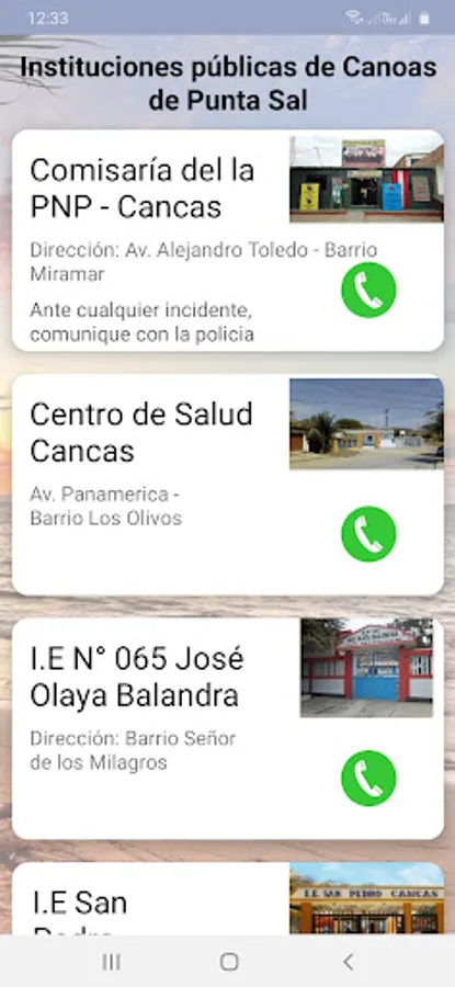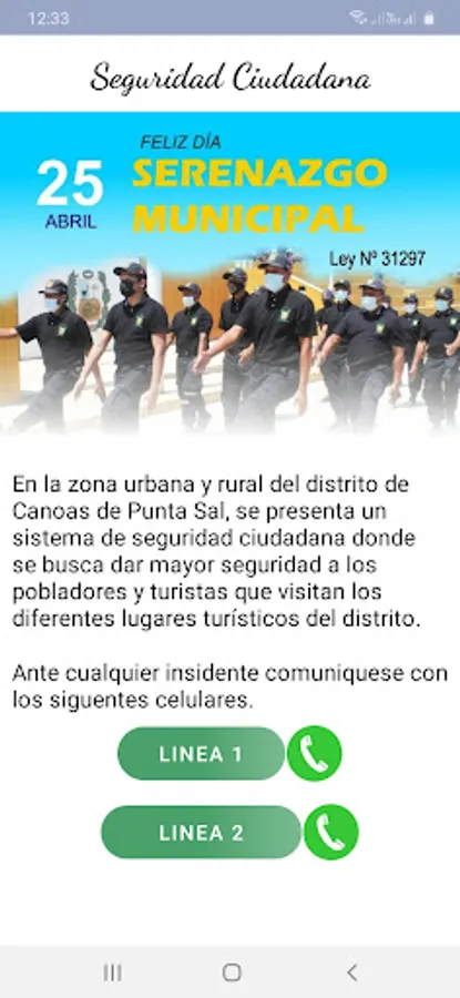 The mobile application of the Municipality of Canoas de Punta Sal, has 4 sections, which can be viewed by the entire community.