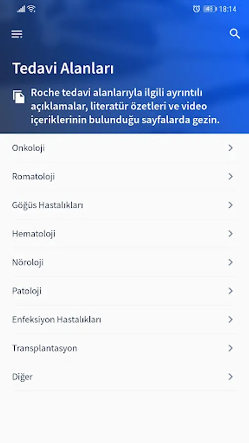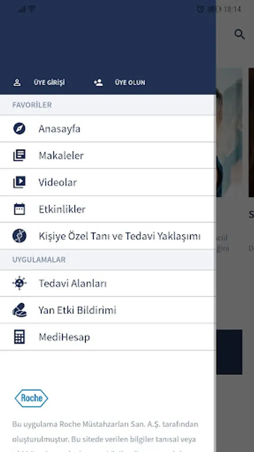 Medikaynak mobile app Roche preparation San. Inc. created by health has a reach of up to date medical information sources for different treatment areas for professionals. Within the application includes the following features: