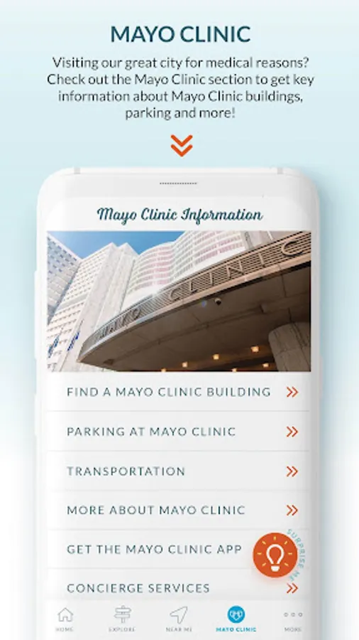 This app was created to help you have smooth, seamless, and positive experiences as you find your way around the city, navigate between appointments, and find things to do and places to go. Three organizations—Experience Rochester MN, Destination Medical Center, and Mayo Clinic—partnered to develop the app.