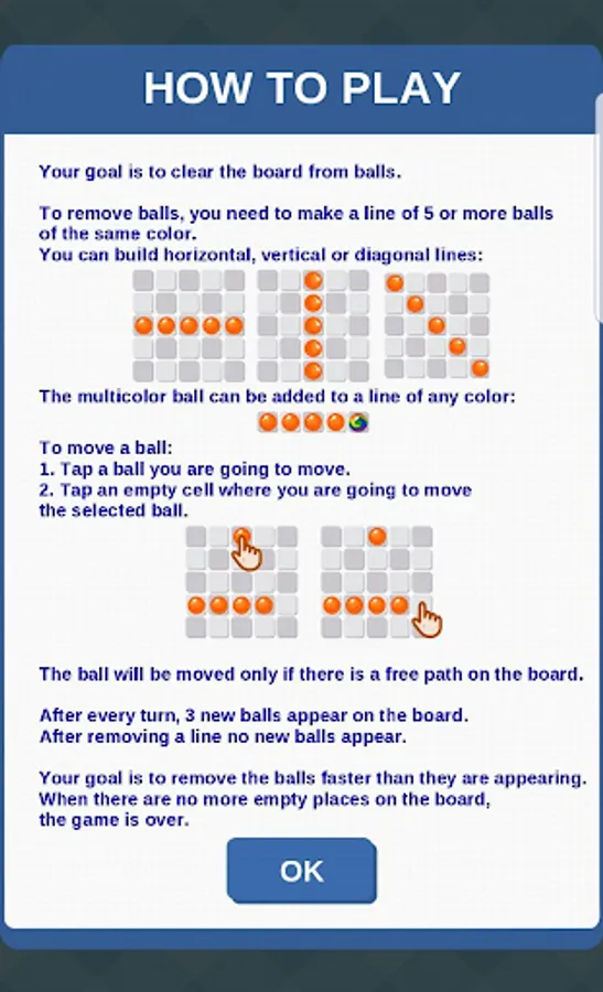 Move color balls, match 5 of the same color, build color lines! You will need your logic and a bit of luck! The rules are simple, but this puzzle game is fun and addictive! Good time killer for all ages.