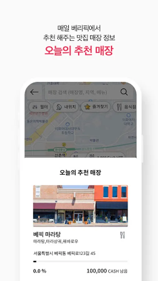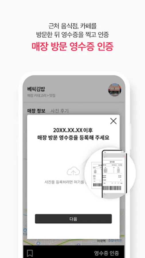 Veripick is a store visit-type earning service that pays set points when you visit a registered store near you to activate your small business store and verify your payment receipt. In addition, you will receive points by solving quizzes or participating in card news. Points accumulated online and offline through the integrated reserve system can be exchanged for mobile gift certificates (gifticons).