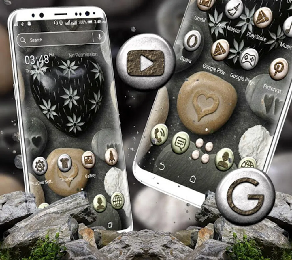 The Cool Rock Heart Theme presents a very lovely look to the display. Rock Heart launcher theme provides a silver icon pack. The sharp silver gives the users very edgy feel and depicts the theme with HD live wallpaper and brings you a fantastic design experience. Make your device cool and attractive with a customized app icon pack, organized folders, sliding screen effects, HD wallpapers, and widgets. You will love Rock Theme to customize your home screen. Rejuvenate your phones home screen with the Rock Heart Launcher Theme with sharp Rock icons. Get your phone a new outlook altogether with Rock Heart Launcher Theme.