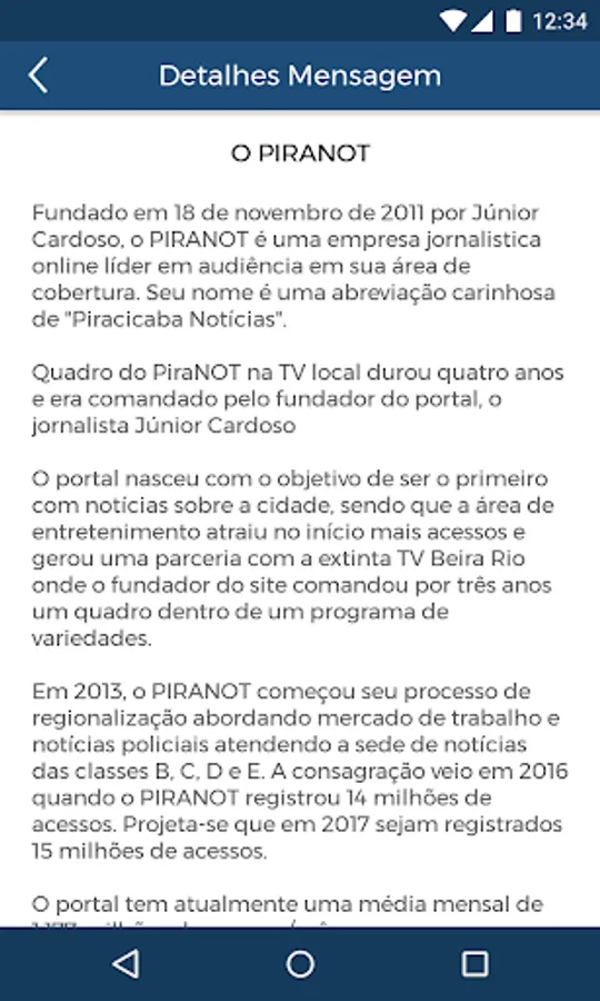 Stay connected 24 hours a day on the top stories of Piracicaba and receive alerts on your mobile phone screen by PIRANOT application.
