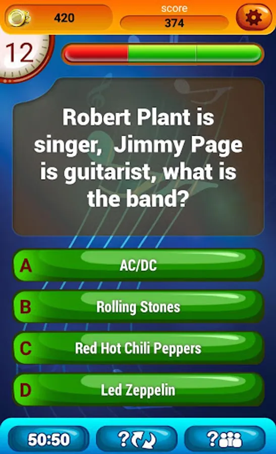 Guess the rock star game, guess the song music game or guess the RnR musician in the picture – lots of interesting music quiz questions will keep your attention for hours! This “free quiz app” contains more than 400 questions about “rock stars” and rock music! It is a perfect quiz game for all fans of this music genre! Download free Rock n Roll Music Quiz Game!