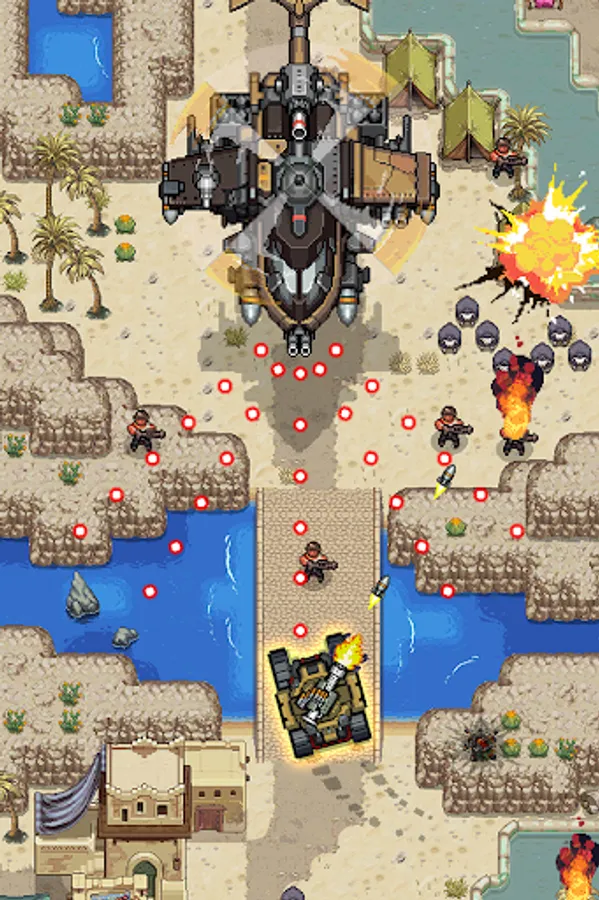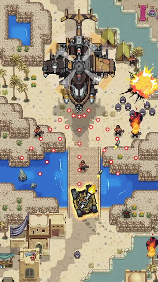⭐ Classic theme with impressive pixel graphic: Jackal Army brings you back to the era of arcade games. All the jeeps, guns, explosions, pistols, military bases... will immensely bring the childhood vibe to your phone.