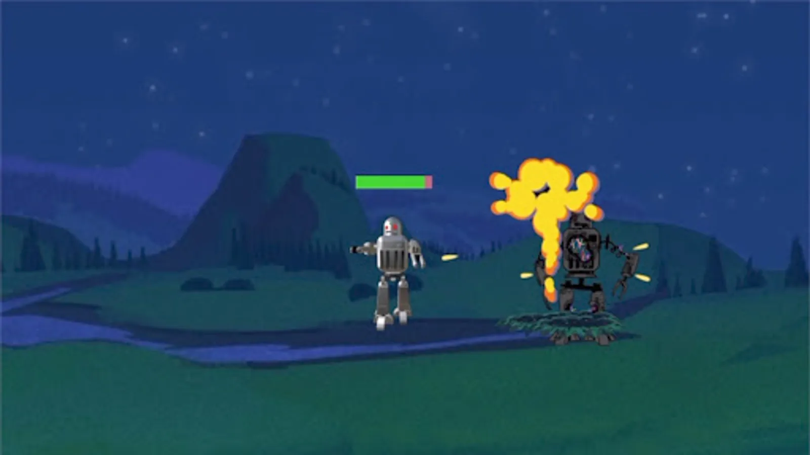 Robots are invading Earth and it's up to you to defeat them! M.E.K.A.s will drop from the sky and start their attack. Use your prototype wrist rocket launcher to take them out.