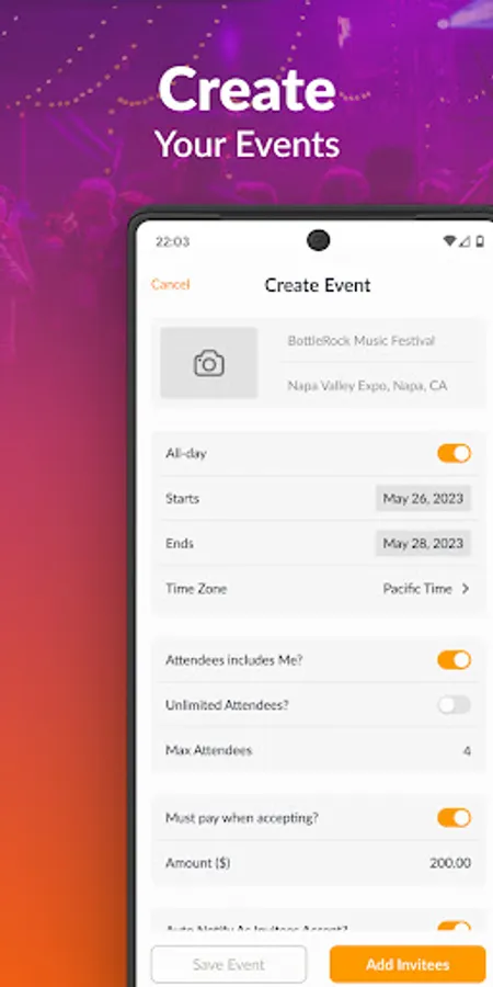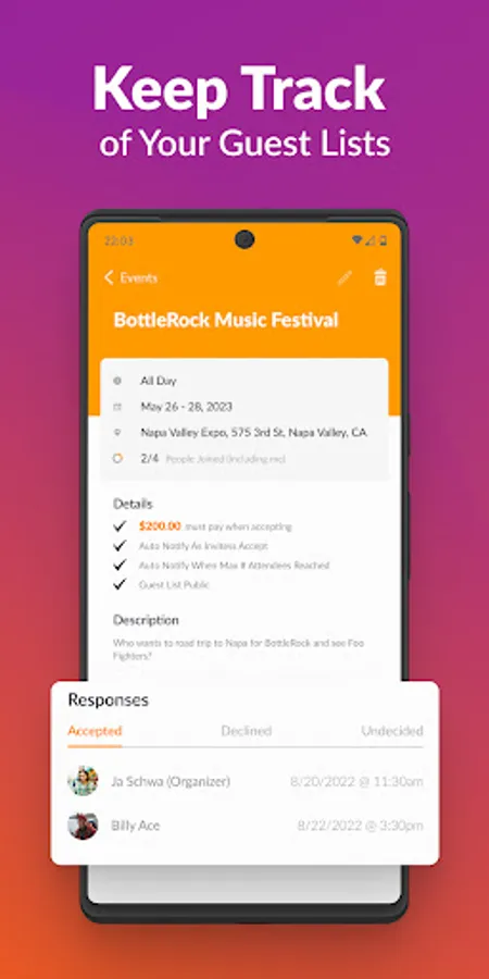 Actually, all the work about event invitations that currently lives across multiple scheduling, communications, and payment platforms, now you can finish in one place - In our app!