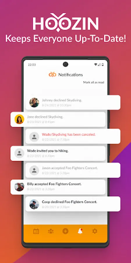 📅 HOOZIN is the ultimate group event invite app, centralizing all of your event invitation activity in one place! This is an amazingly simplifying event planning tool with a unique and advanced event notification system, that you can also use as a wedding and party planner tool - Manage the guest list and track check-ins & RSVP!