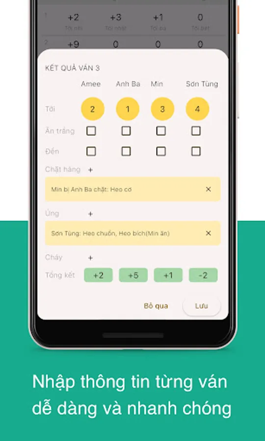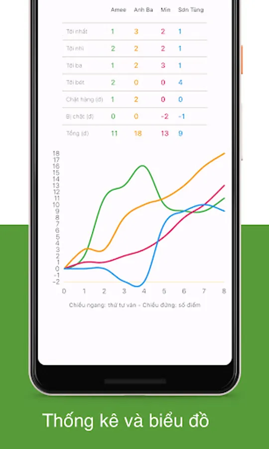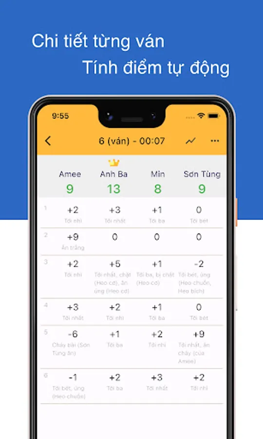 - Score detailed scores for each game with information: arrival, chopping, waterlogging, fire, ...