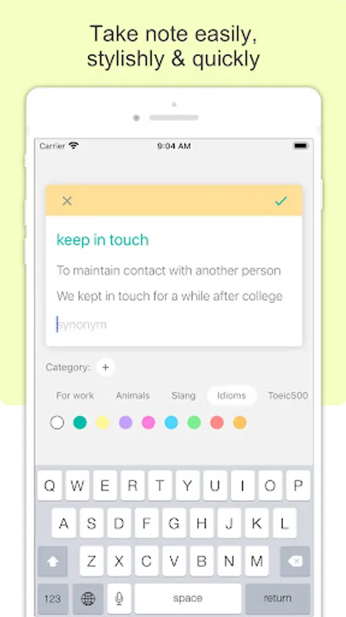 - Whenever you learn or see a new word, just open the Whale Notes and take a note for it with meaning and example.