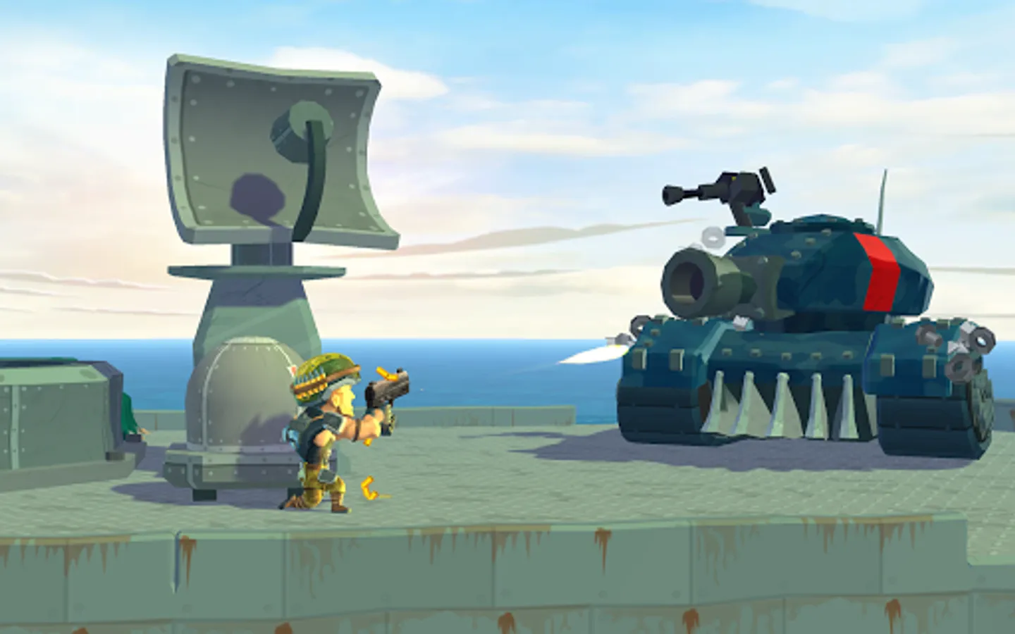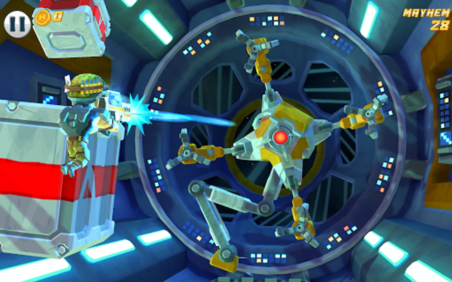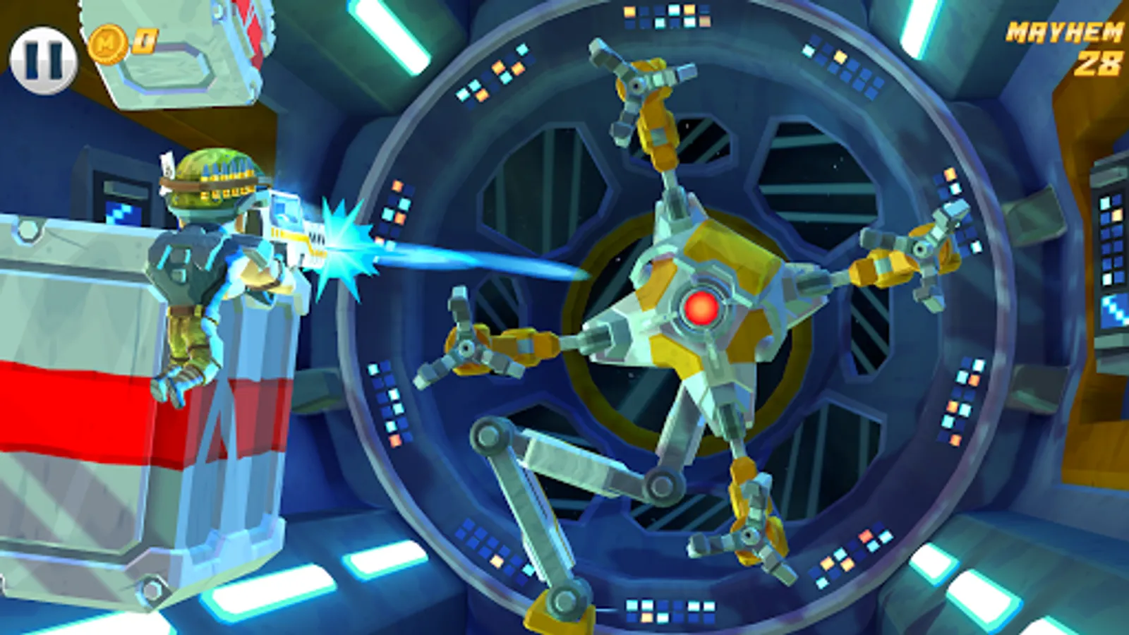 Blast your way through a militia of bad guys, dodge bullets and travel to the moon and back in an adventure only worthy of Major Mayhem!