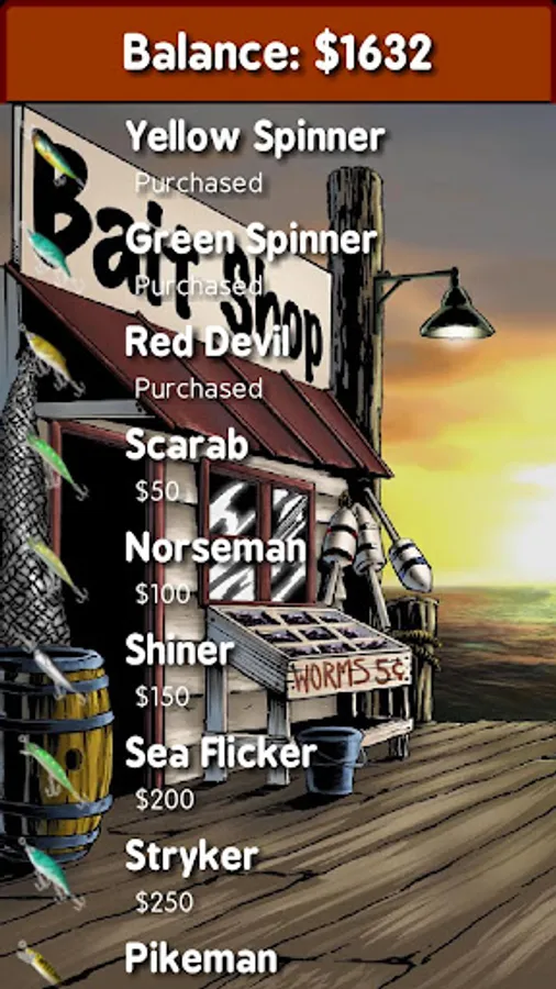 In Big Sport Fishing you can earn virtual credits to acquire special bonus items. These credits can also be purchased using an In-App purchase.