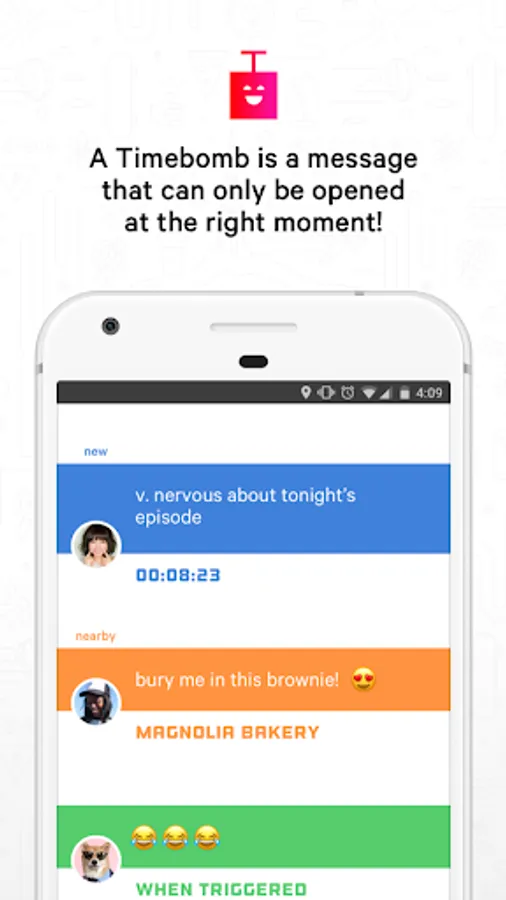 • Send Timebombs to all of your followers, or send private messages to your closest friends!