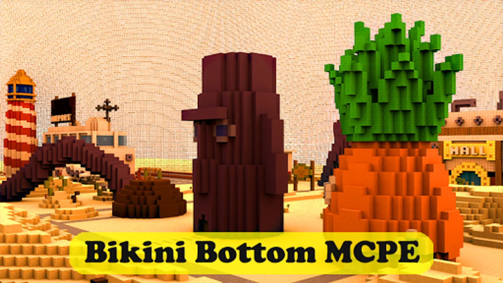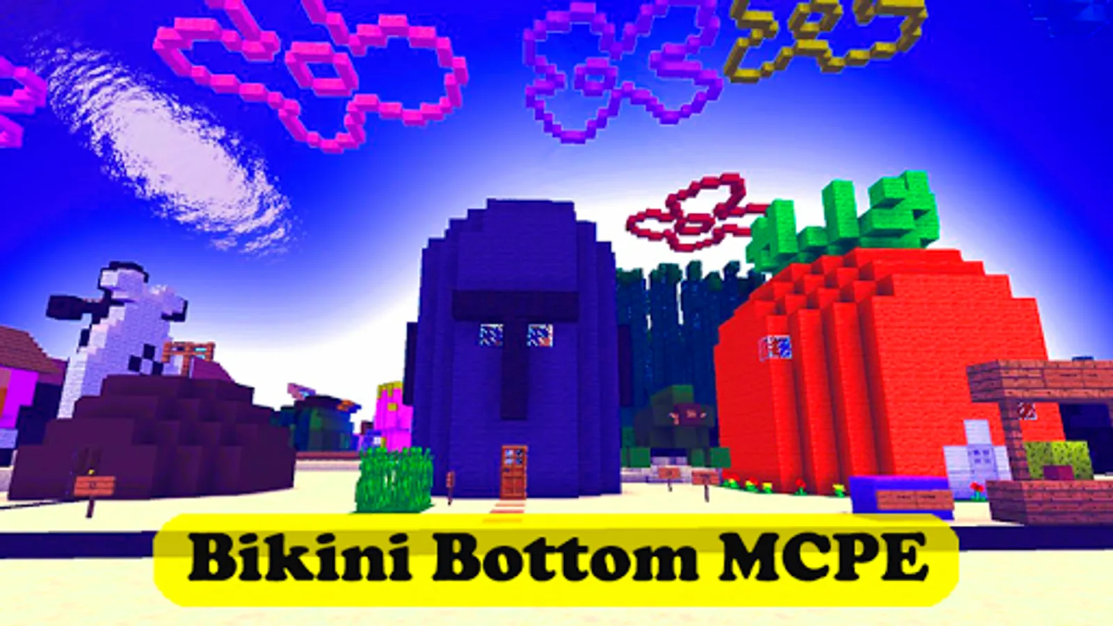 Bikini Bottom Mod is a fictional nickelodeon cartoon city and the main venue for the Sponge Bob SquarePants series. This add-on allows you to get acquainted with the city of spongbob in Minecraft and its inhabitants. On this spungbob map you can find all the attributes of a series of cartoons and films about the spongebob squarepants: from the Sponge Bob Pineapple house to the Bikini Bottom Mall and all friends. Everything include Krusty Krab fastfood in these spoungebob games and maps is stylized specifically for Minecraft Pocket Edition. For maximum pleasure, we recommend that you download the soongebob BikiniBottom map and then use this spungbob add-on.