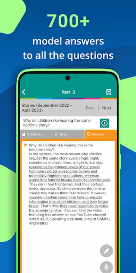 Install the IELTS Speaking Assistant app now and get all necessary materials for efficient IELTS speaking practice: