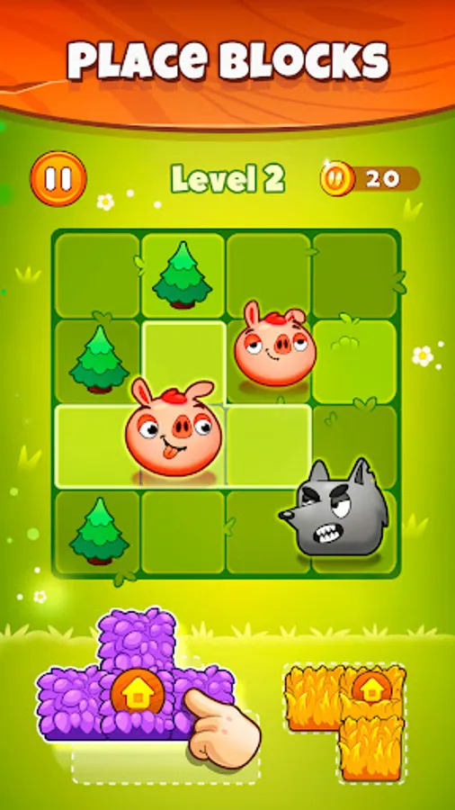Welcome to the Pigs and Wolf, the new block puzzle based on a classic story, that is going to grab your attention and wash away all the stress!