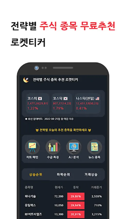 - Based on chart and candle patterns, we recommend stocks by combining famous chart indicators and analyzing rising patterns.