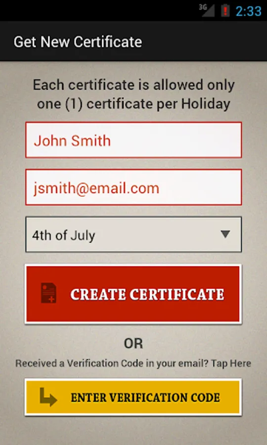 Step 2: Enter your name, email address and select the upcoming Holiday.
