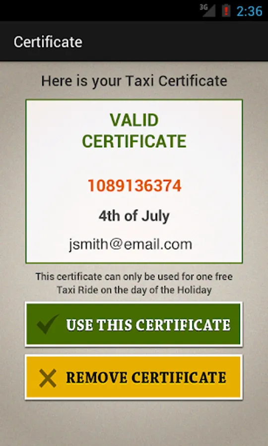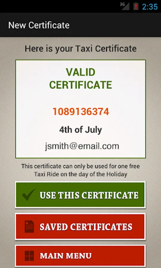 Step 3: Your email will be sent a 5 digit verification code. Enter this code in the app and receive your Certificate ID.