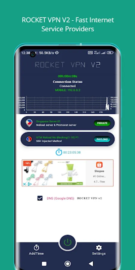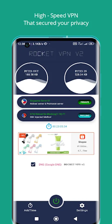 Download Rocket VPN v2 and experience its features for free without creating login account in free servers.