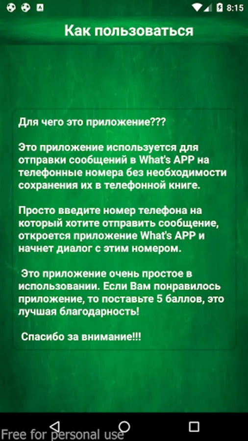 This application is very easy to use. If you liked the application, then give 5 points, this is the best thanks!