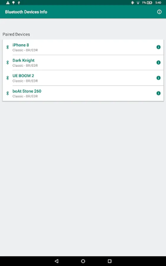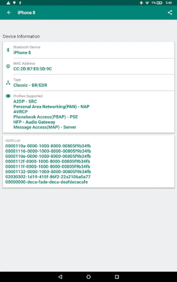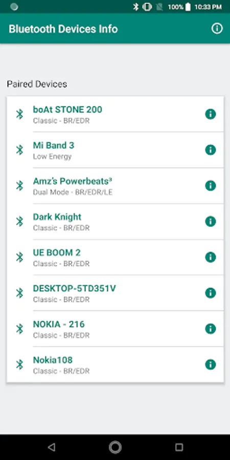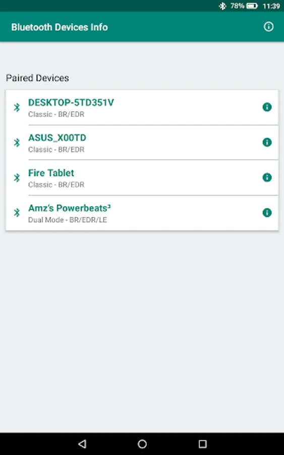 Bluetooth Devices Info app displays and allows to share all essential information of paired Bluetooth devices such as its