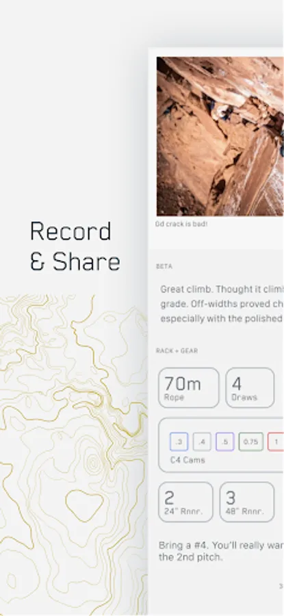 Download the app for free and start exploring our rapidly growing set of 3D crags, routes, and community notes to get stoked on new climbs, plan trips, prep gear, find climbs quickly and navigate them safely.