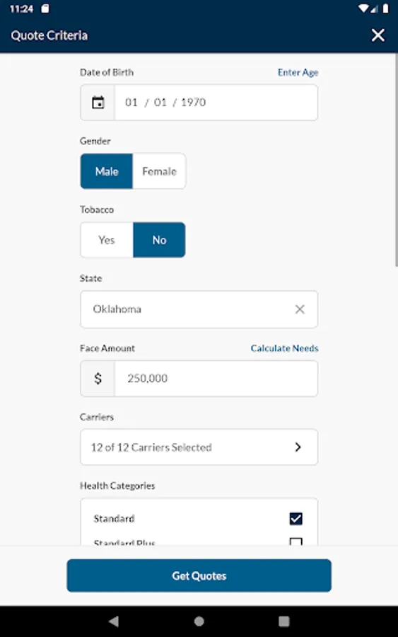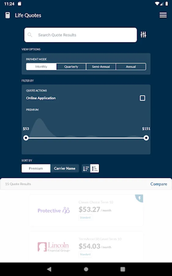 This completely free app delivers quote comparisons for over 30 life insurance carriers. Quotes are given for all 50 States. Are you a life insurance agent? Sign up for a free account to use powerful agent tools.