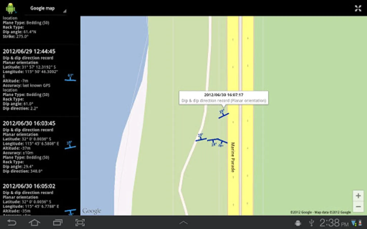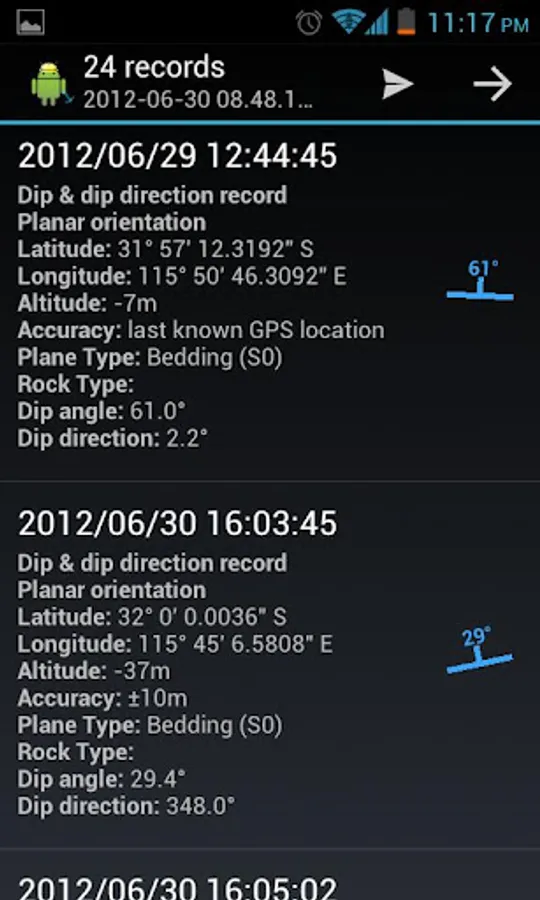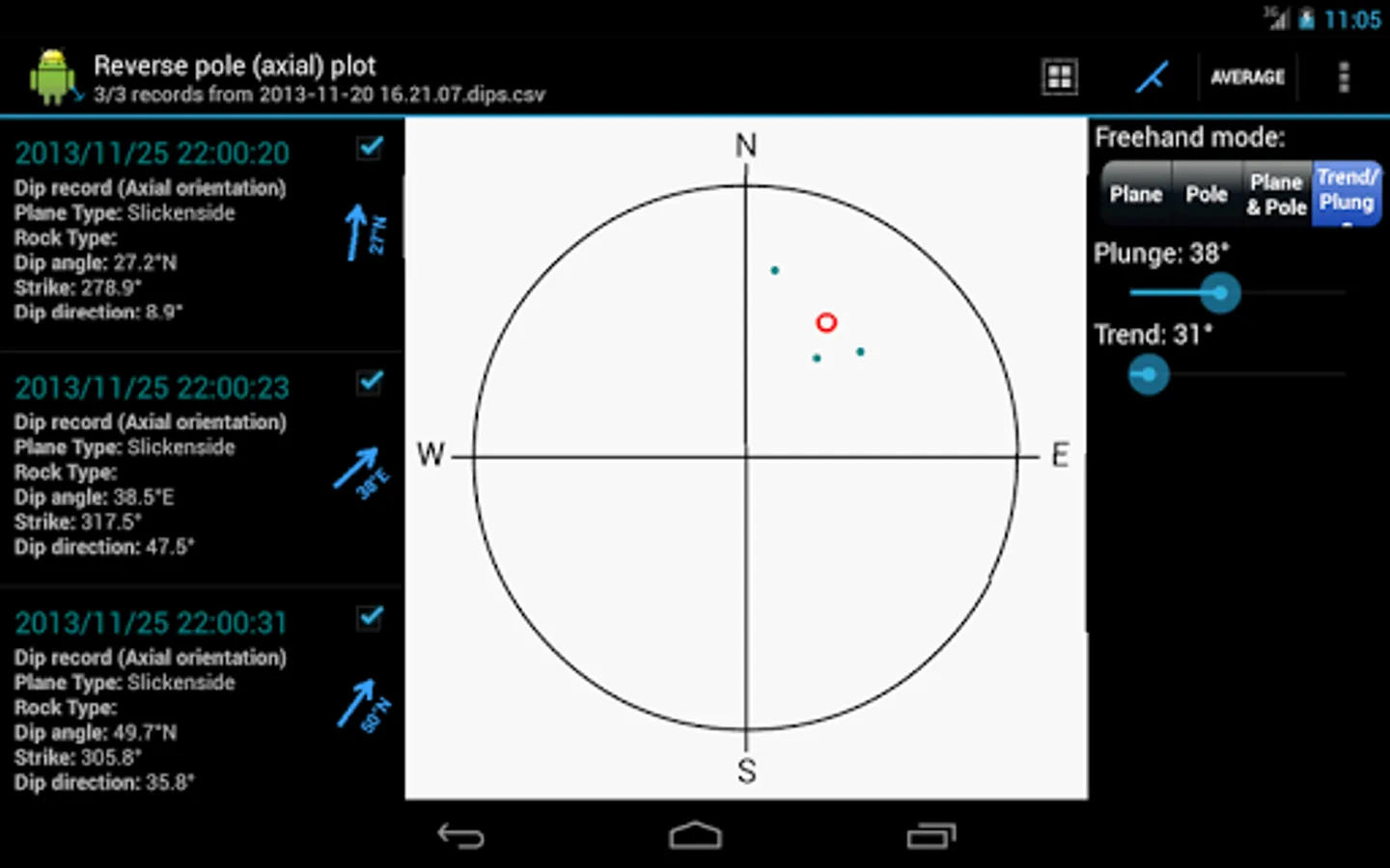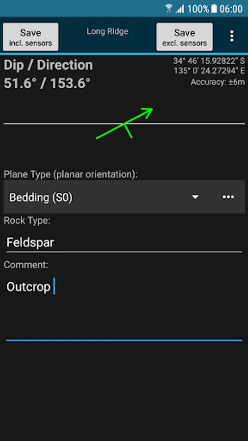 GPS and magnetic field information can also be saved, along with details on the rock plane & type.