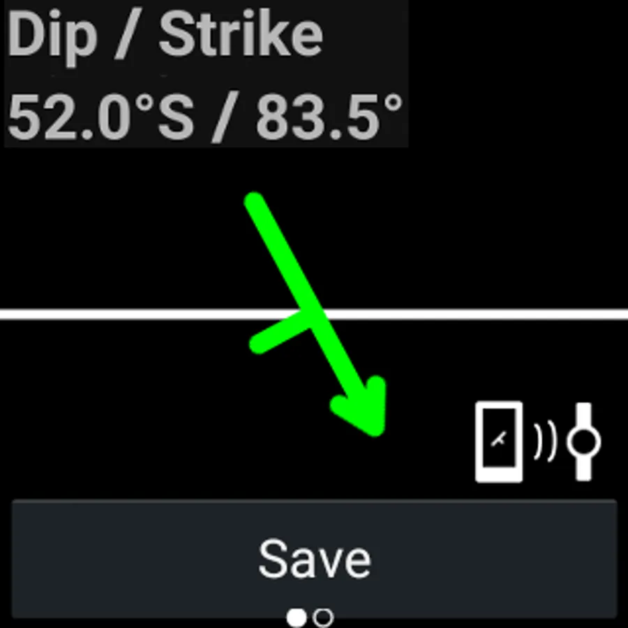 -Log dip & strike or dip & dip direction by placing the phone on the rock/plane in any orientation (using the rotating symbol and quick help features as guides).