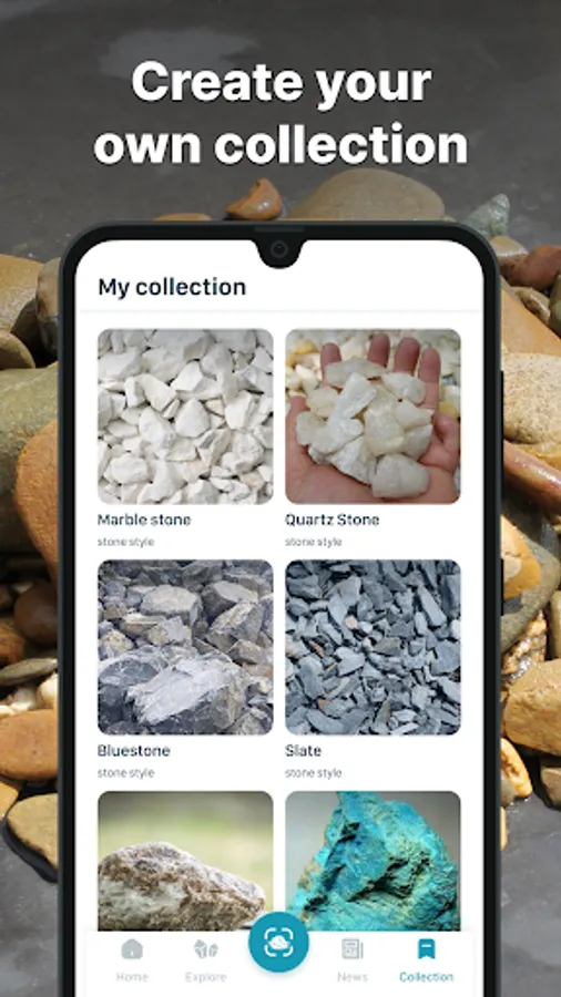 Save stone search results to your favorites gallery and can view them at any time. You can record your story with rocks and minerals, and easily mark rock id, crystal identifier, gemstone identifier, mineral identifier, location, date, purchase price, etc