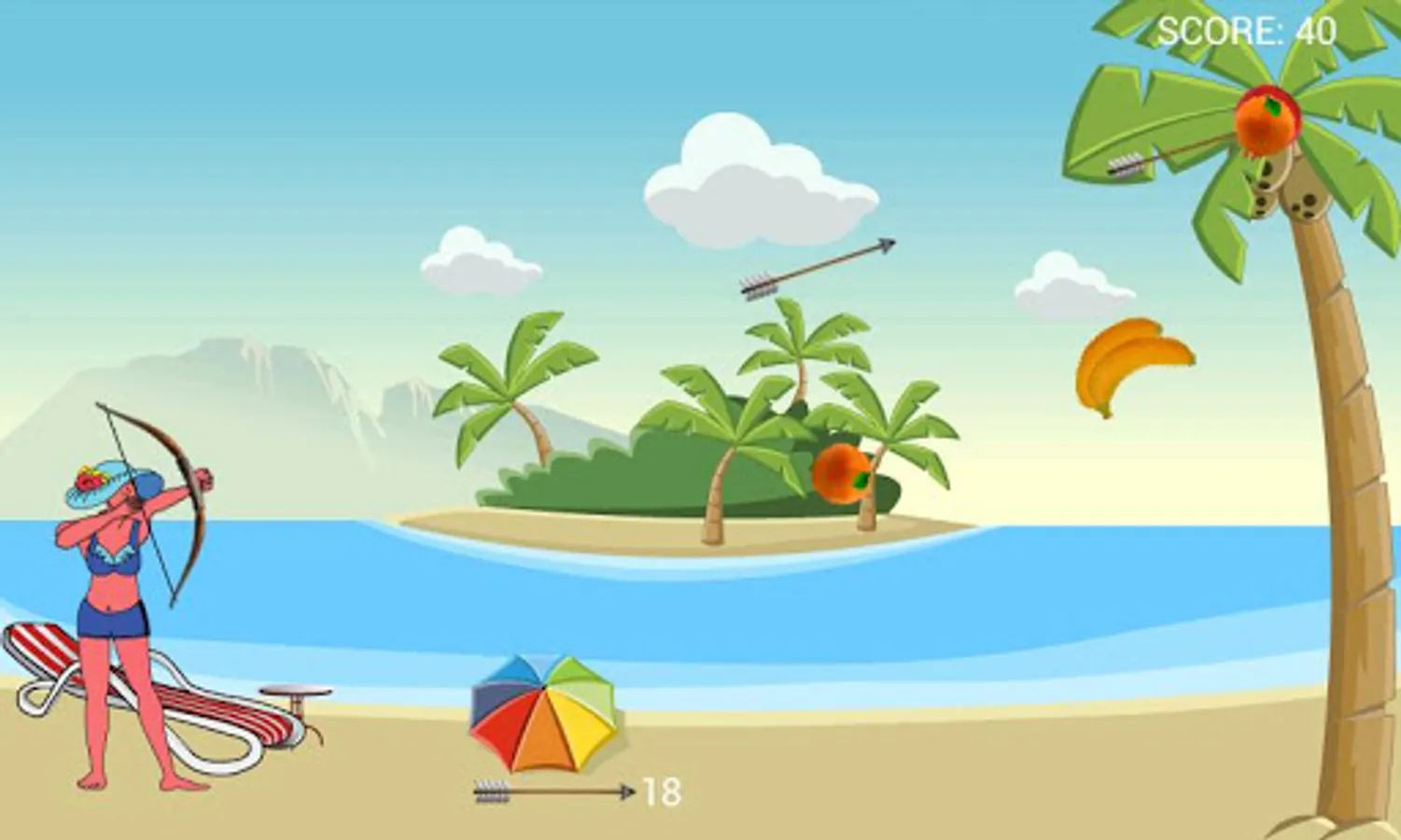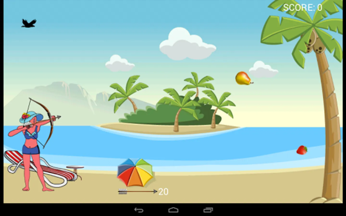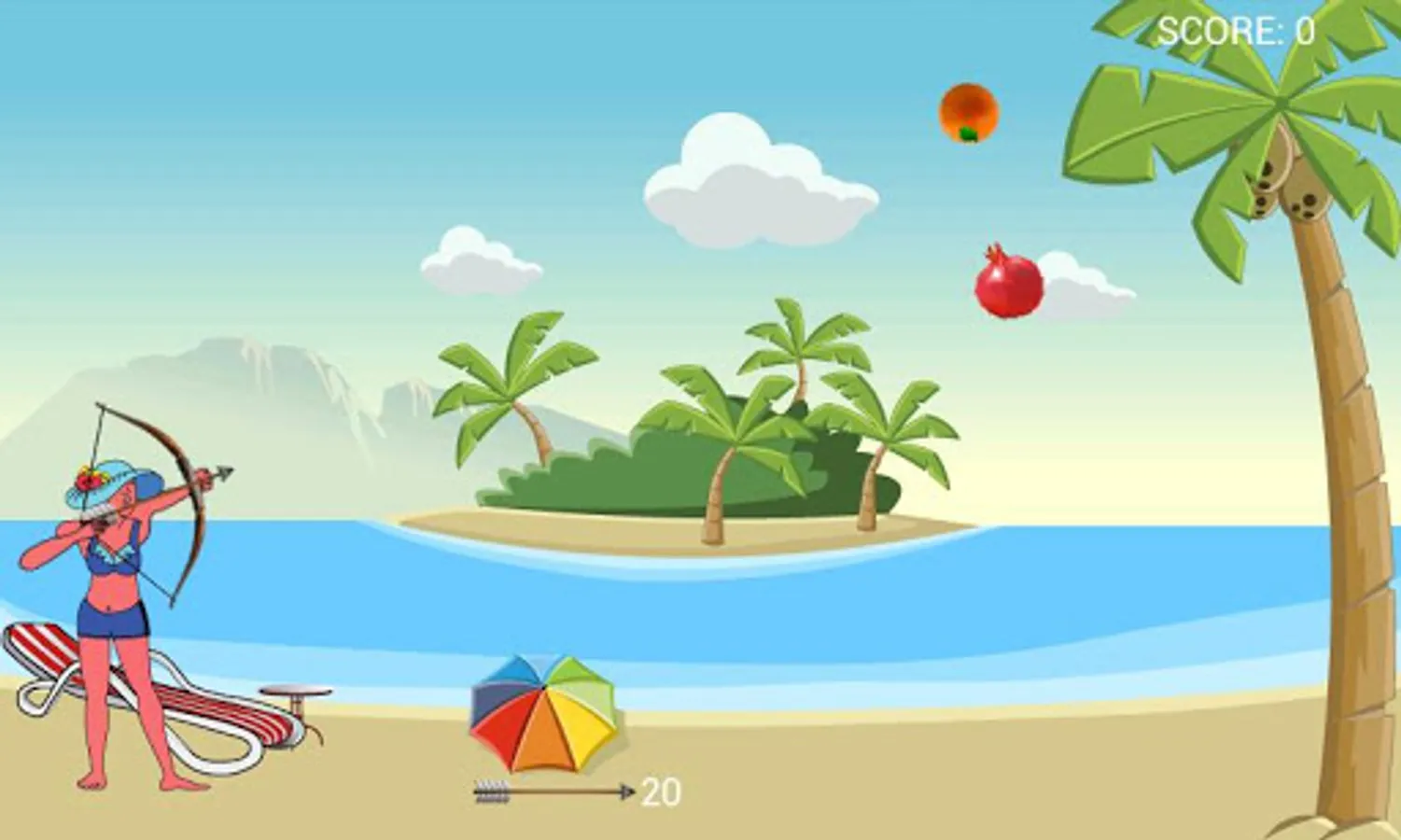 Fruit Archery II delivers a new style of archery game. Easy to play, hard to master. This is a high scoring game. Aim at the fruits popping up every now and then. The smaller the fruit size higher the point you score. Keep aiming and score high. Keep an eye on the birds too and make sure not to hurt them. You may have to pay the penalty.