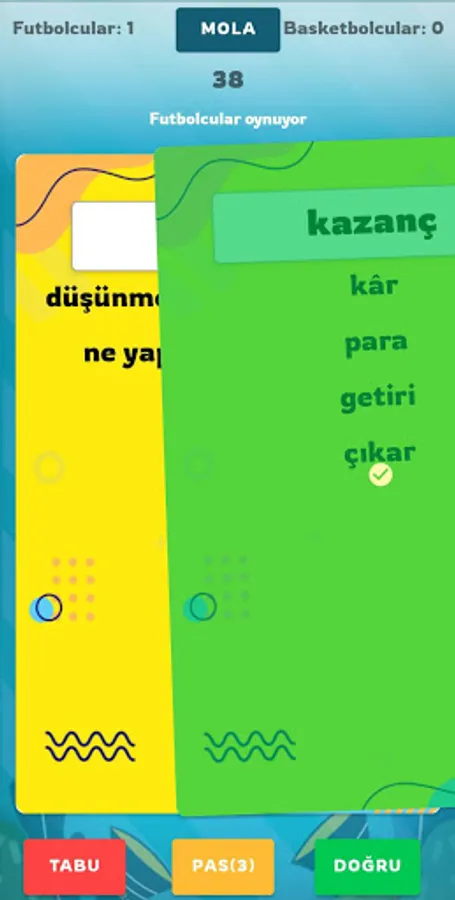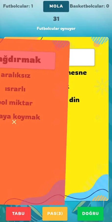 🔶 You can swipe the taboo cards right, left and down to rule the game. Swiping the card right means right, swiping left means wrong, and swiping down means pass. In this way, you can use your time more efficiently by swiping the cards left and right without having to search for buttons in the game