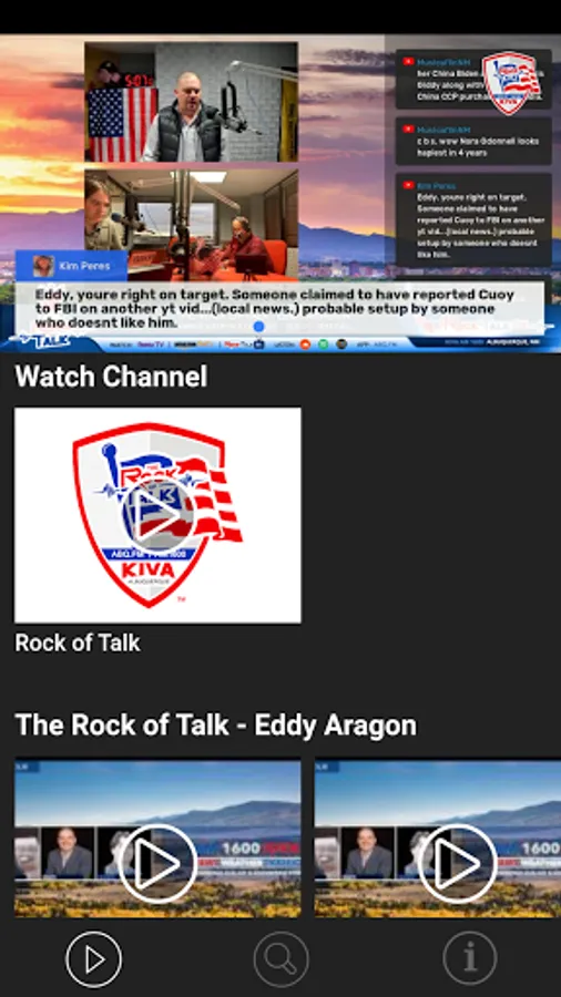 "The Rock of Talk" broadcasts out of Albuquerque, New Mexico on FM 93.7 and AM 1600 KIVA and worldwide at www.rockoftalk.com. You can also go to any Alexa device and say 'Hey, Alexa play KIVA RADIO'