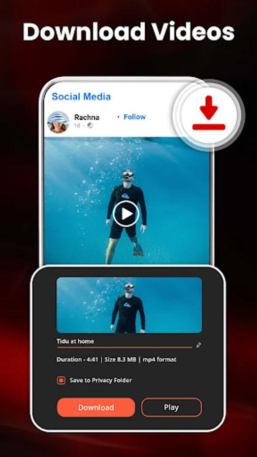 ● Video downloader for Facebook, Instagram, and other social media with mp4 player functionality