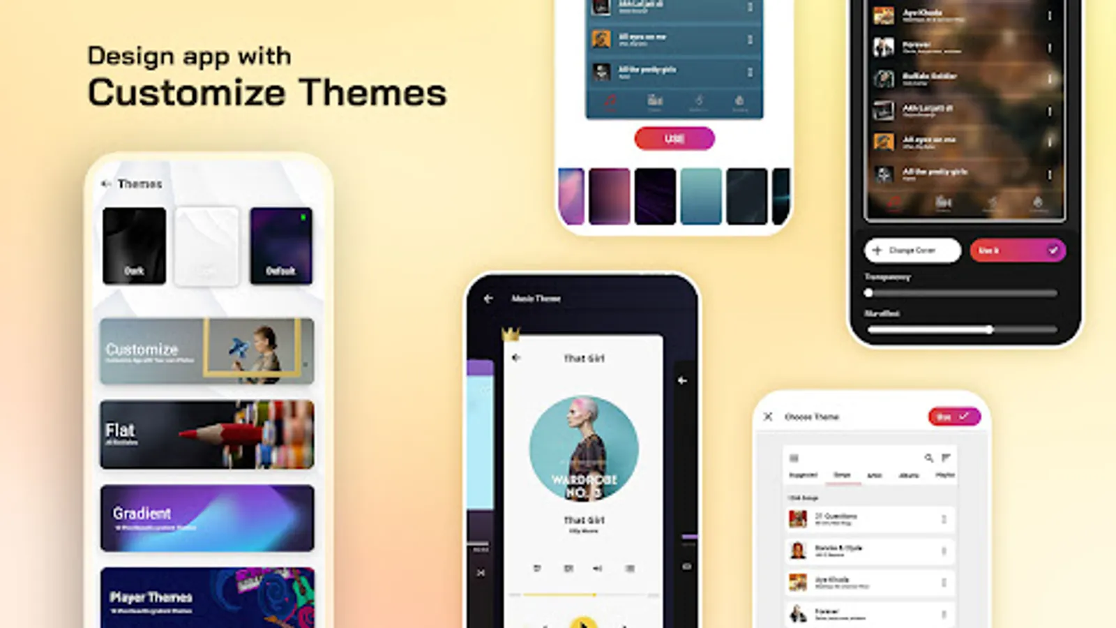📱Attractive themes like gradient, flat colours and customise app with own photos.