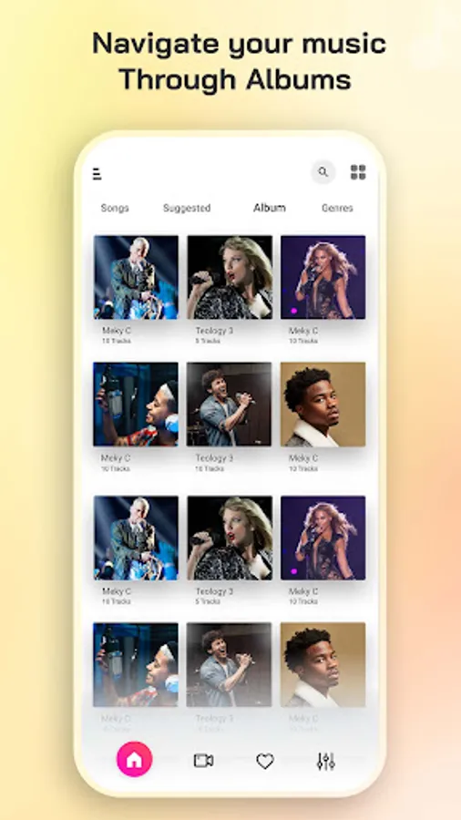 🔍Browse and search music by artists, albums, playlists, folders, and genres.