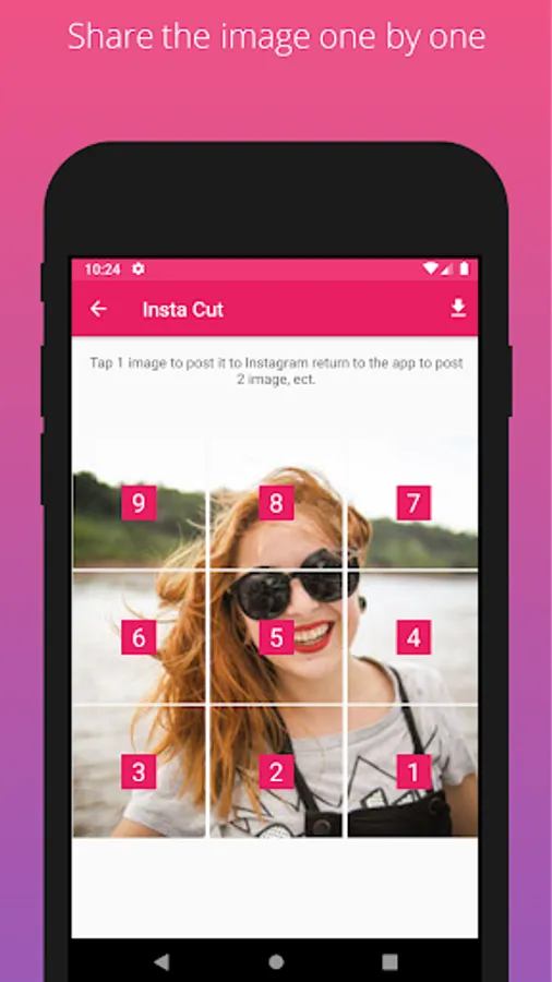 Just open and select image from gallery and select the grid size and split photos into grid for Instagram.