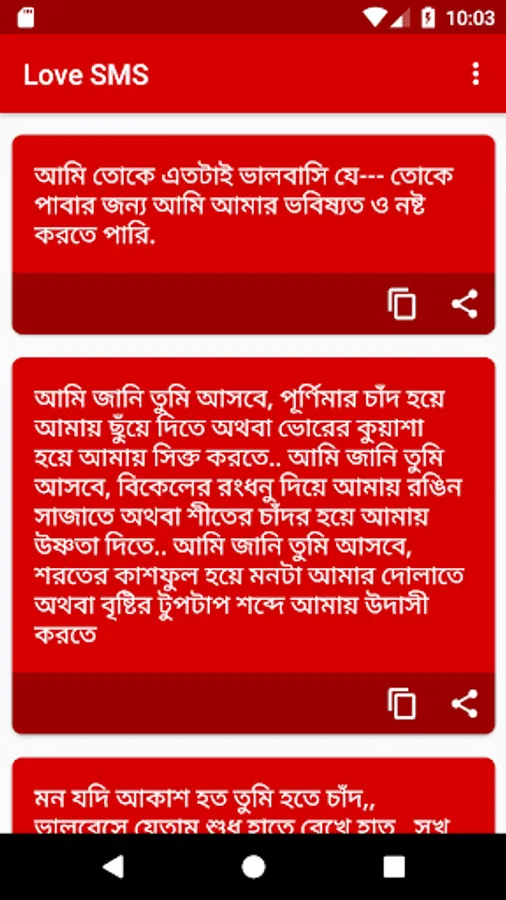 ভালোবাসার মেসেজ অ্যাপ টি তে রেখেছি SMS কপি ও সরাসরি সেন্ড করার অপশেন।