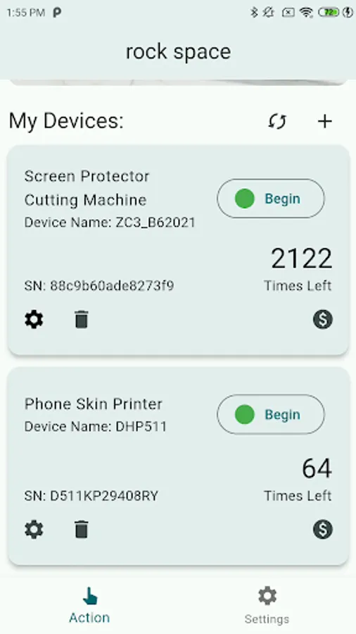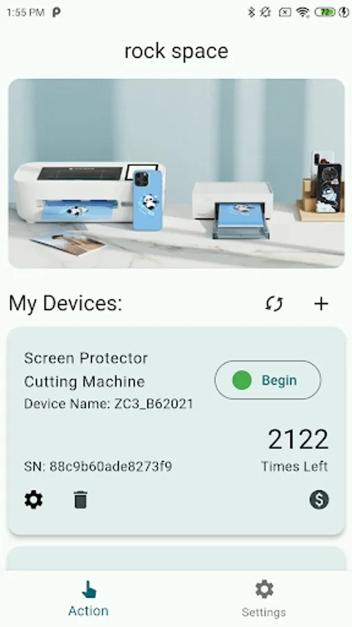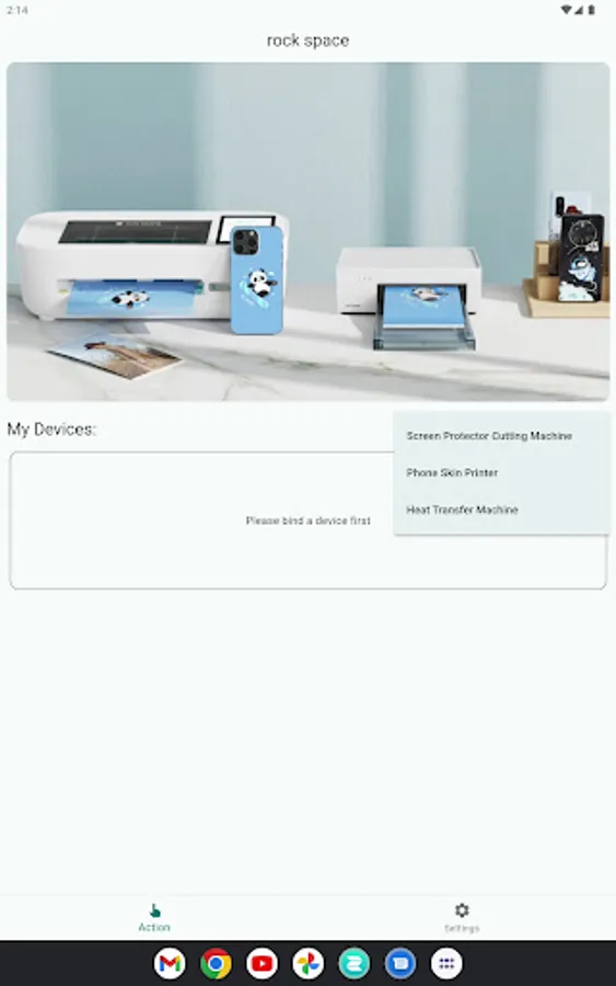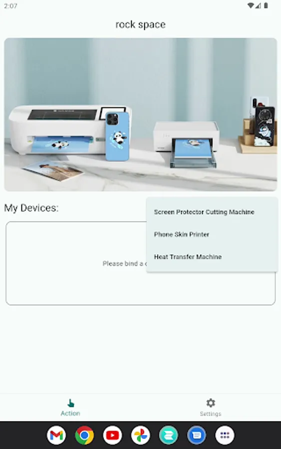 Our current line of mobile beauty DIY devices includes a phone film-making machine, a sticker printing machine, and a phone case making machine. Through this app, you can perform the following operations for each device: