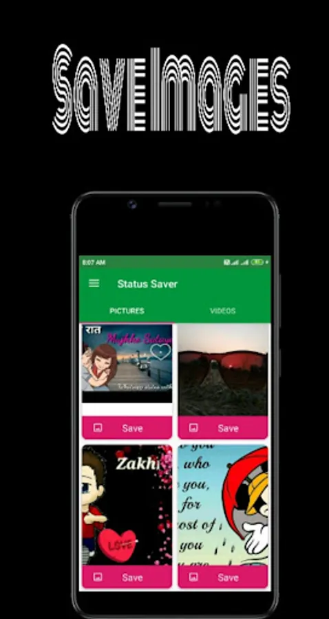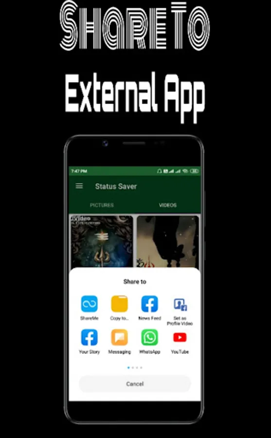 2 - Open Status Saver app, Click on any Image or Video to share.