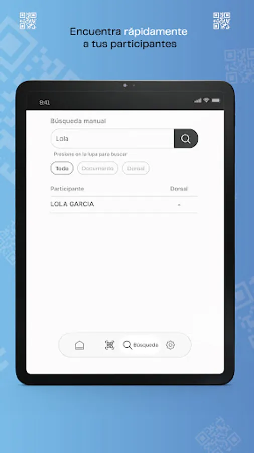 - Automatic search, we read the QR code of the receipt and show the participant's file.
