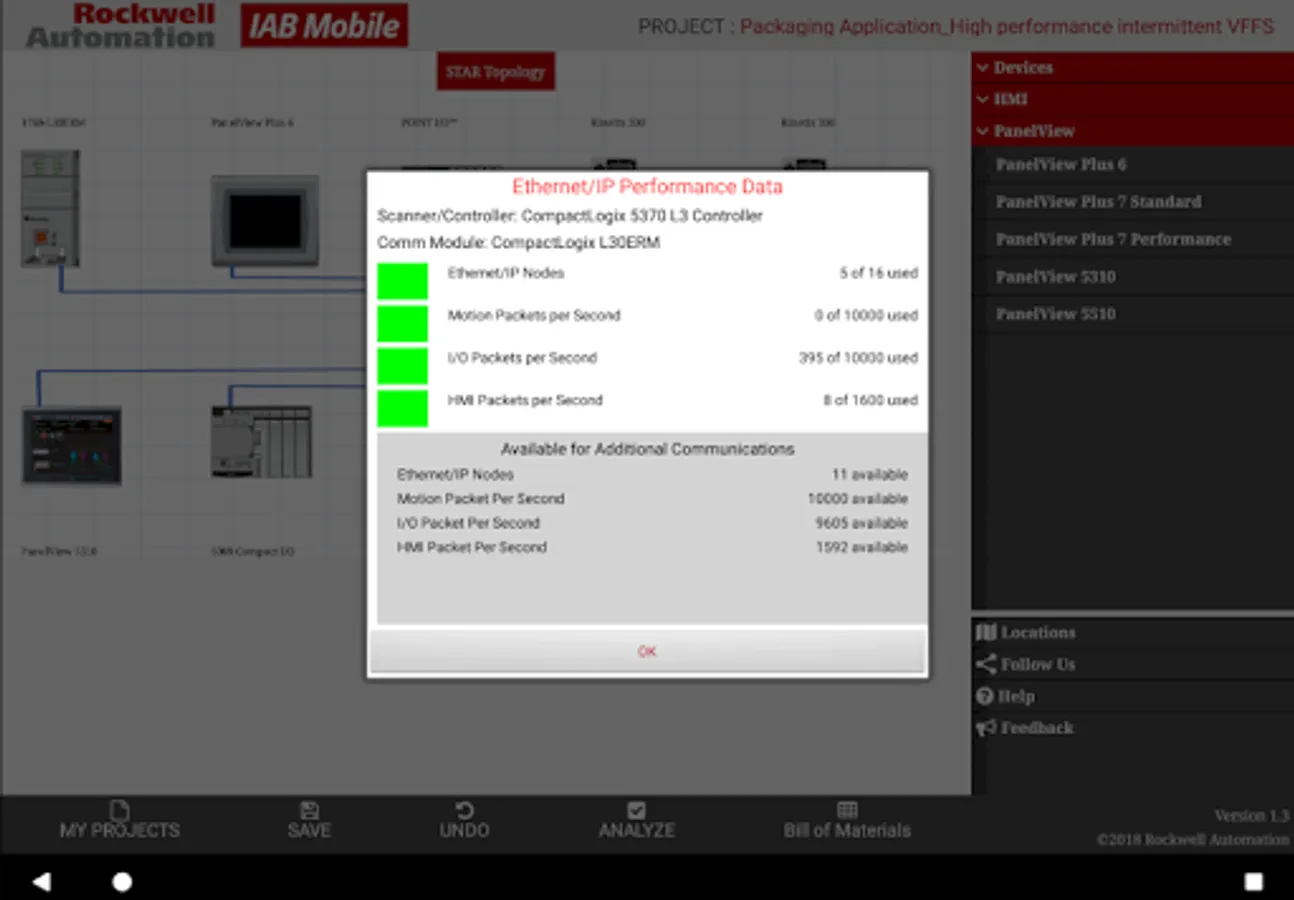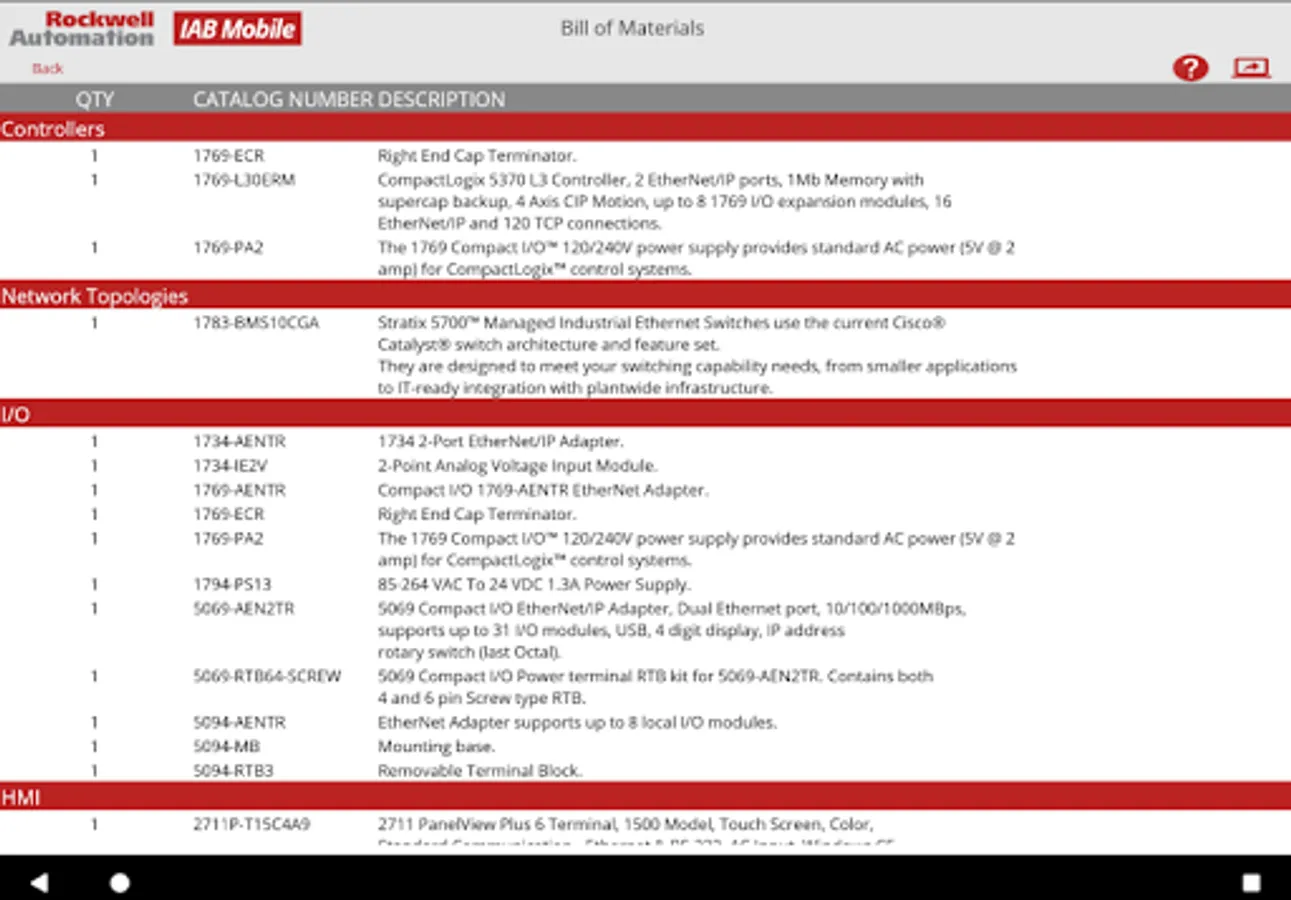 Use the Rockwell Automation Integrated Architecture Builder (IAB) Mobile app to quickly sketch initial designs for industrial control systems. IAB Mobile supports major hardware platforms and EtherNet/IP networks. With this app, you need only minimal technical details to graphically lay out a system. Use IAB Mobile to analyze EtherNet/IP performance data, view and email Bill of Materials, and locate distributor/sales offices. In addition, you can export your IAB Mobile designs to the IAB desktop version for system validation.