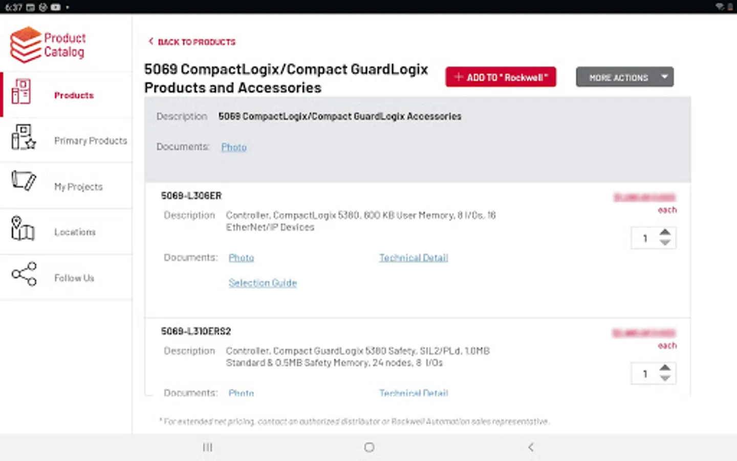Get started by browsing or searching for the Allen-Bradley or Rockwell Software product required. Since no single supplier can do it all, the app also includes complementary products from many Rockwell Automation Encompass Partners.