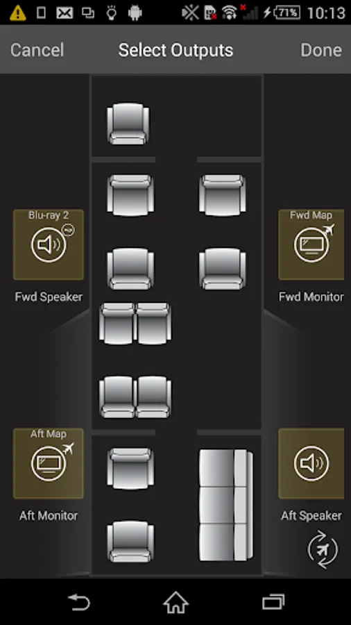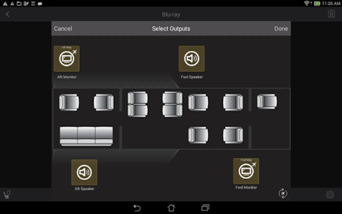 The application is customized to each aircraft’s unique configuration. Configuration includes feature availability in addition to personalize look and feel. Furthermore, many features can be displayed on tail-specific LOPA screens. Access to features may be further organized by roles or locations.