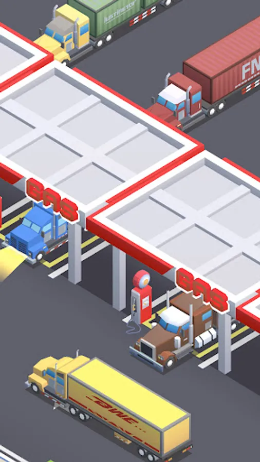 Each player starts the business from operating a small gas station and expand the business through building numerous facilities, including accommodation and truck service stores. By upgrading the gas station and opening more parking lots, players can build other buildings like car wash, diner, bathroom and convenient stores.