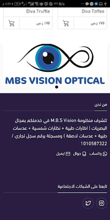 M.B.S Vision system is honored at your service in the field of optics (medical frames + sunglasses + medical lenses + contact lenses) and registered with the commercial registration number / 1010587322
