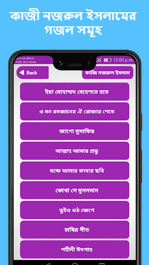 আপনি যদি গজল শিখতে চান তাহলে আপনার উপকারে আসবে আমাদের এই অ্যাপসটি আমাদের এই অ্যাপসে আমরা অনেকগুলি গজল দিয়েছি আপনারা আমাদের এই অ্যাপসে যেসব গজল রয়েছে তার মধ্যে আপনার যে গজলটি (gojol)পছন্দ হয় আপনার জনপ্রিয় সেই গজলটি আপনি শিখতে পারবেন।